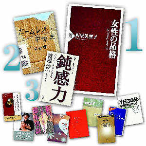 日本日前评选出了2007年度日本十大畅销书。《女性的品格》以230万册的销量雄踞榜首,面世仅两个月就成为百万畅销书的《无家可归的中学生》力压大牌作家渡边淳一的《钝感力》位列第二。今年的十大畅销书不仅折射出当今的日本民情,也反映了日本人的精神迷茫。