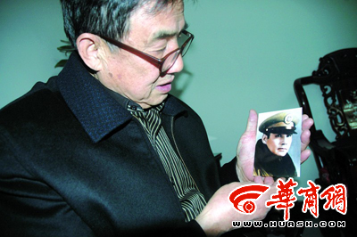张居礼深情地看着父亲的照片 记者 潘京 摄