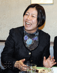 旅日中国作家杨逸与芥川文学奖失之交臂,但她笑着说,下次继续努力。16日晚摄于东京都中央区。(共同社)