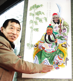 年画这门原先日渐凋零的传统艺术,正随着国家对民族文化的振兴而复兴。不过,刚呈现出兴旺的势头,就有一批假货跟进,在今天于三山会馆开幕的“花样年画——海上年俗系列展之二”上,来自天津杨柳青、山东潍坊和河北武强的三位具有代表性的年画艺术家,对此不约而同地叹起了苦经。