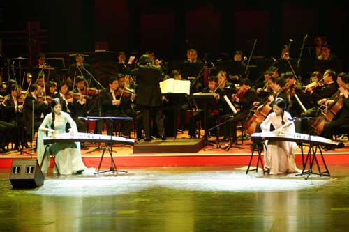 近日来,这些活跃于国际乐坛、享有极高声望的华人音乐家在国家大剧院内进行了紧张的彩排。黄英的《春江花月夜》、殷承宗的钢琴协奏曲《黄河》,齐•宝力高的《心灵之歌》,袁莉袁莎姐妹的古筝曲目《渔舟唱晚》响彻国家大剧院的歌剧厅,激荡人心。本次音乐盛典的一大特色是“中国旋律,西式演绎;传统艺术,现代表现”,这在连续两日袁莉袁莎姐妹古筝演奏中得到了极好的体现。她们表示,古筝是中国的传统乐器,但这一次就与交响乐合奏,扩大了传统的舞台,可以使更多的观众了解接受欣赏这一艺术。是一项很好的尝试。在排练的同时,这些艺术家们,时刻不忘灾区。他们多次询问灾区的情况,关注还在返乡途中的同胞。不管他们能否有机会听到这些音乐,都希望音符的传扬可以给他们带去力量和希望。