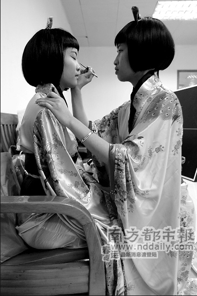 参加表演的女孩在化妆,动漫嘉年华是许多少男少女的节日。高贵彬摄