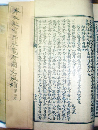 今天(3月5日)是敬爱的周恩来总理诞辰110周年,为纪念这个特别的日子,3月4日,沈阳著名收藏家詹洪阁首次向沈阳日报展示了83年前由奉天图书发行所印发的《奉天教育品展览会国文成绩》四册一套的图书,他小心翼翼地翻开了该书介绍说:“你看,这套书的第二卷55页、56页上,刊登了周恩来在沈阳读书时所写的一篇作文《东关模范学校第二周年纪念感言》。据我了解,这是目前所发现的周恩来最早的一篇文章。”