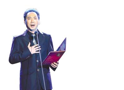 晚会由著名表演艺术家瞿弦和与武警文工团合唱团分别献上不同版本的《周总理,你在哪里》,奏响开篇大幕。74岁高龄的殷之光再度携手著名钢琴家刘诗昆,献上配乐诗朗诵《周总理办公室的灯光》,而周恩来扮演者刘劲(右图)与邓颖超扮演者黄薇这对老搭档继电视连续剧《周总理在重庆》后再次合作,为观众送上周总理与邓颖超的通信录对白节选《从西花厅海棠忆起》。动情处两人潸然泪下,下台前,两人对着背景板上的周恩来夫妇深鞠一躬,场面十分感人。歌唱家丁毅的《你是这样的人》将晚会推向高潮。记者张学军 记者 苏冠名/摄