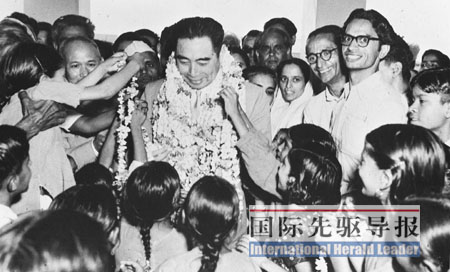 资料图:1954年6月,周恩来总理对印度进行正式友好访问,受到热烈欢迎。