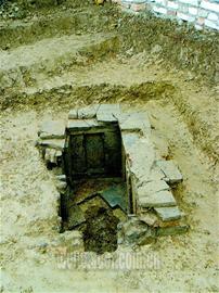 昨日中午记者在现场看到,工地上分布着大小、深浅不一的菱形探方,在一个深约1米的探方里,有一口直径约不到1米的古井,井水已快漫至井口。“井深约3米,距今已有1800多年历史了。”据现场工作人员介绍,出土之初,井口全被泥土堵塞,清理之后,大量地下水慢慢渗入,才变成现在这样。“挖出了好多陪葬品呢!”一大姐一边挖着古墓,一边说道,前些天她挖出了很多陶器,包括青碗、陶罐等等,大部分已被工作人员转移到安全地方。