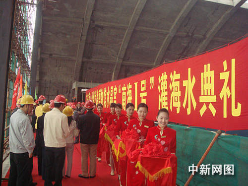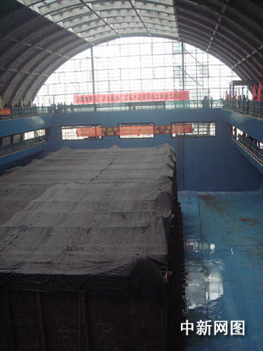 水晶宫的“南海一号”沉箱正在接受海水灌注。中新社发 陈明 摄