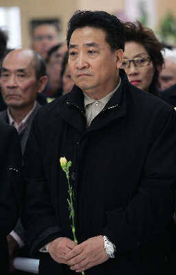 2点半,追悼会正式开始,大约600多位周柏春生前的挚亲友好聚在大厅,为他送行。周柏春安详地躺在鲜花丛中,接受大家的默哀和鞠躬。而此时,大厅门外的群众已经里三层外三层,很多人甚至难掩激动之情。
