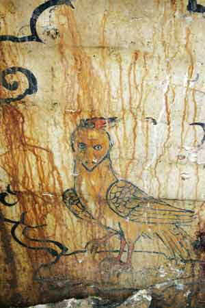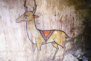 永川青峰镇凌阁堂村2社正在修建一条公路。10日,挖掘机工人陈某像往常一样,挥动机械臂,刨土、装载……突然,“轰”的一声,地上冒出一个洞,洞内红光四射!“看起来红彤彤的!大家都惊呆了!”目击村民们说,他们看到这个洞系砖砌,洞口离地5米左右。在洞内发出红光的竟是精美的绘画:一片纯白的洞壁上,祥云、马、鹿、美女……姿态万千,栩栩如生。