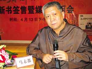 昨天下午,“百家讲坛”主讲人马未都先生来到南京新街口大众书局南京书城,为数百名等候多时的读者和“马扎”签名售书,城内众多媒体蜂拥而来,把镜头都对准了这位当红人物。马未都在近一个小时的记者见面会上,侃侃而谈。他透露了许多与南京的不解之缘,称早年当出版社编辑时,作家苏童最早给他投稿,“我一看就感觉,这位作者将来一定能红。我还说过,苏童是位帅哥作家。”