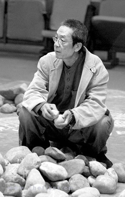 在演出现场记者看到,小剧场前排的座椅都已拆除,在舞台下空出一块正方形区域,几百块大小不一的鹅卵石堆放在演出区域内,1个多小时的演出就在这些石头中进行。盲人演员手持盲杖小心地迈出每一步,有了这些石头做定位标志,他们走台时不再那么茫然。因座椅被拆除,每次演出只能容纳200名观众。
