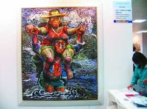 其中三川艺术国际画廊展出的四川美院院长罗中立的油画《过河》,描绘了山村里男人背女人过河的场景,吸引了很多藏家的关注,本次博览会将持续到5月8日结束。
