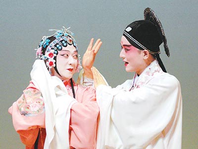图为中日版《牡丹亭》剧照,坂东玉三郎扮演杜丽娘(左)。