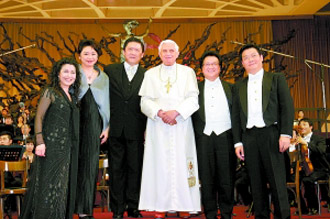 北京时间今天凌晨,莫扎特最后一部不朽名作《安魂曲》和中国乐曲《茉莉花》在梵蒂冈城保罗六世礼堂奏响,这不是一场普通的音乐会,担任演出的是中国爱乐乐团和上海歌剧院合唱团,而一位最特殊的听众则是教皇本笃十六世。这是中国第一个官方文艺团体在梵蒂冈城亮相,也是教皇第一次在梵蒂冈城观看中国艺术家的表演,双方的第一次意义非凡,被看做是一次“文化破冰之旅”。