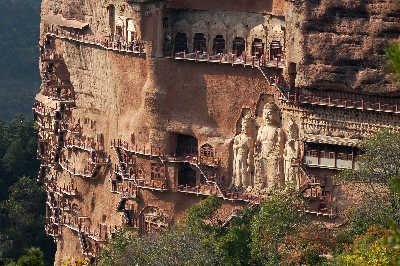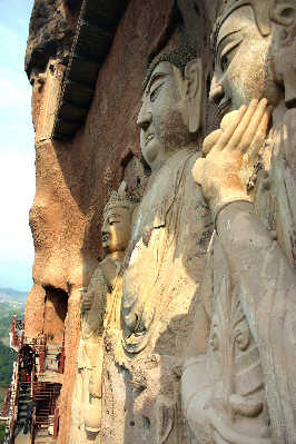 麦积山数百个石龛中,荟萃着上迄后秦下至清朝的十多个朝代的各种塑像。
