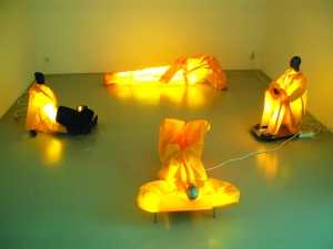 参展“融超经验2008”的23位艺术家中,既有像库奈利斯这样享誉国际的名艺术家,也有初出茅庐的青年人。在开幕式上,记者看到了如今旅居罗马的库奈利斯的三个“无题”装置艺术,还有乔治·拉帕斯的“发光雕塑”与卢卡斯·萨马拉斯的《镜中的房间》。乔治·拉帕斯介绍,他的灵感来自街上的灯箱:“当光源的光向四处弥漫,四周的氛围都发生了变化。”