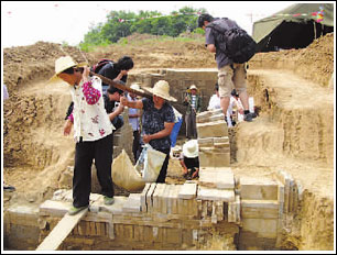 南朝古墓挖掘现场。