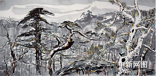 本次艺博会参展作品、著名画家吴冠中中国画《香山春雪》。