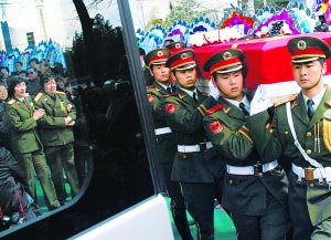2007年4月2日,毛岸青追悼会结束后,被搀扶着的邵华目送灵柩离去。白继开摄