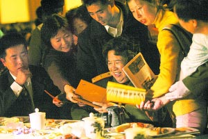 2003年10月19日,北京钓鱼台芳菲苑,毛泽东的孙子、刚刚获得军事科学院博士学位的毛新宇发布新书——《爷爷毛泽东》。邵华与儿子共同为读者签名留念。张风摄