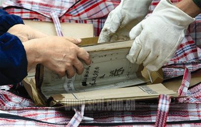 “这些受潮或遭肢解的档案卷必须要经过除湿、蒸干、消毒、杀虫、冻干等诸多保护环节。以蒸干为例,失去水分后的档案会变得像一块‘硬砖’,只能小心地一层层剥开,每揭一页夹一层干燥纸来保护。”体态有些发福的张新吃力地蹲在地上,仔细地清点装有档案的塑料编织袋,“今天的发掘应该说比较顺利,一上午就运走了两卡车,约有8000多卷,但不少档案已受潮或碎裂,后期还要仔细修补和保存。”张新说,他们事先准备了1000个编织袋,但到中午时分基本告罄,只得紧急调来1000个支援,“我们乐观地估计,这次抢救性挖掘能救出五六万卷文物档案,基本保住了羌族‘血脉’!”