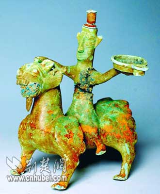 一级文物人骑麒麟形灯座