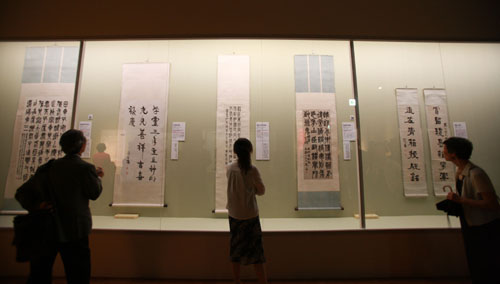 为纪念中日和平友好条约签订三十周年而举办的“北京故宫藏历代书法大展”十四日下午在东京江户博物馆正式开幕,日本首相福田康夫、中国驻日大使崔天凯等应邀参观。