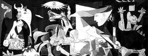 《格尔尼卡》是毕加索最著名的作品,描绘西班牙内战时期格尔尼卡被德军轰炸机轰炸为平地的惨景。