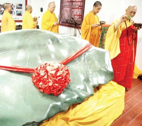 昨日,归元禅寺为重达3.2吨、价值亿元的和田玉举行了开光仪式。即日起这块玉石正式向社会开放展示,同时向社会征集最佳供奉方案。