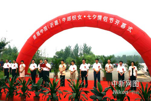 图为首届中国(沂源)牛郎织女·七夕情侣节开幕式现场。作者:张璐