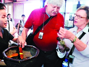 文化展开展首日就迎来不少什刹海地区的居民和外国游客,一对来自美国的夫妇对老物件十分感兴趣,不时摸摸这个,试试那个,还坐上太师椅过了一回“主人瘾”。记者与他们交谈得知,这对美国夫妇是本届奥运会女子100米仰泳铜牌获得者玛格丽特·赫尔策的父母。汉斯·赫尔策先生告诉记者,他们看完女儿的比赛便开始游览北京,第一站来到什刹海就碰上了如此精彩的文化展览。“女儿还在备战本周末的比赛,等比赛结束我们一定会带她过来。”汉斯·赫尔策说。