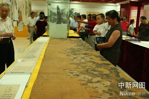 中新网常州八月二十八日电(唐娟)“长四点六八米,宽零点八八米,南宋画派的代表人物李安忠如此巨幅画作今世可谓独此一件”。北京奥运圆满落幕,已是古稀之年的常州艺术家王之羲按奈不住心中激动,今天在神州第一高佛塔常州天宁宝塔内展示自己多年收藏“祈褔世界和平”。