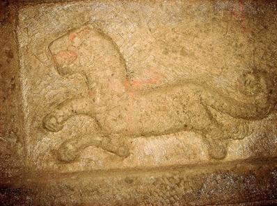 第三次全国文物普查工作组在绵阳三台县郪江镇沿江调查“国保”崖墓群受损情况时,根据村民举报,找到一处新盗掘的西汉古墓,首次发现了墓室内现已濒临灭绝的老虎石雕及大量彩绘建筑雕刻。