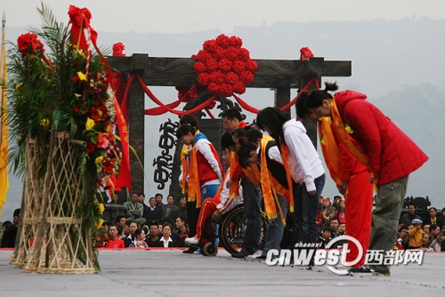 10月7日,以“同享奥运 共祭始祖”为主题的戊子(2008)年重阳节恭祭轩辕黄帝典礼在陕西黄陵县隆重举行。我国11名历届奥运冠军参加了恭祭典礼。
