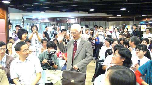 刚于当天由南京赶抵香港的余光中,精神矍铄地与太太一起出席分享会,一到场便赢得久候的读者们热烈掌声。
