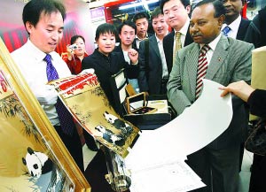 以书画大师吴作人1985年的作品《熊猫图》为蓝本,用999千足金金箔按照1比1比例打造的金币日前在北京百万庄图书大厦首发。