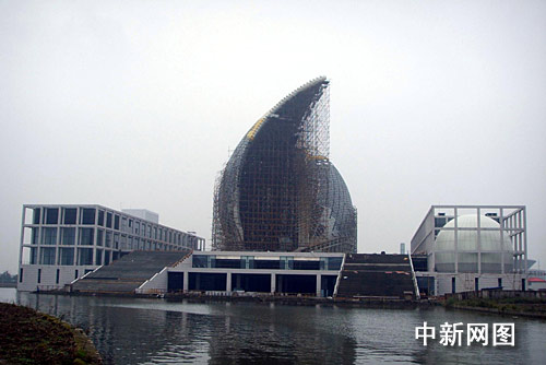 有关工程负责人介绍,目前两座巨大的钢结构帆体已如期完成吊装。在吊装过程中,紧临杭州湾、两面环水、海风巨大等因素曾给施工带来极大难度。