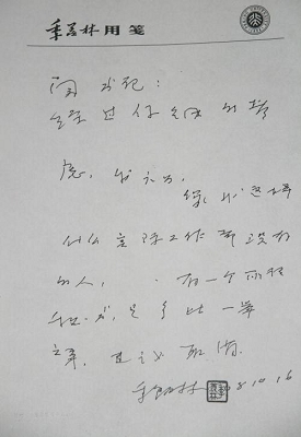 对于现身拍场的季老收藏品,北大有关人士接受采访时称,这些藏品真伪未定,需要进一步鉴定:“根据张衡提供的图片,他拍得费孝通先生题赠季老90寿辰的大字篆书,非常精美,但据其所知,费孝通先生时年已过90高龄,目前查到费老85岁时所作的书法,笔迹已经颤抖,而这幅作品遒劲有力。此外,在网络上公布的臧克家先生给季老的贺寿诗,题‘雅正’,‘雅正’是赠字时候用,不是贺寿,贺寿应写明多少大寿,所以很难让人相信是真品。”而张衡仍坚持认为他所拍的是真品。