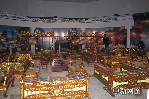 图反映印尼用于国家典礼的大型乐器合奏品种——甘美兰。作 者:艾启平