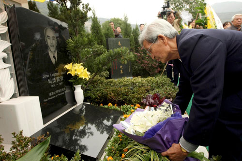 来自北京、上海、杭州等地燕京大学校友代表参加了十七日的安葬仪式。燕京大学校友会北京校友代表国仲元先生把一捧洁白的百合花轻轻地放在墓碑前:“老校长,您安息吧。”