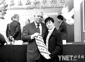 ■小本尼达将美国空军丝巾送给李小林■摄影/谢文华