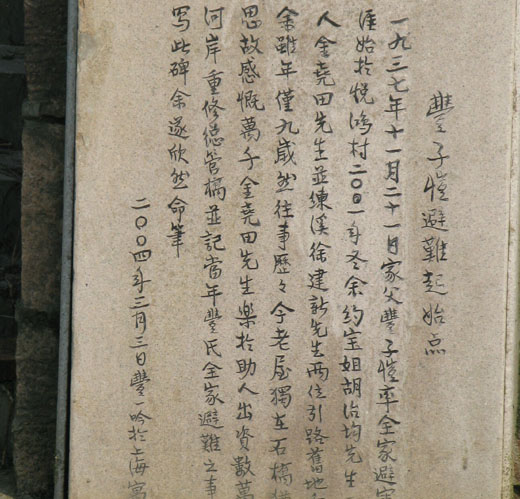 中新网11月19日电 据国家文物局网站消息,湖州市博物馆日前在南浔区练市镇文物普查中,发现并登录了一通近年竖立的石碑,碑文记述了著名漫画家丰子恺先生携家避难一事,为研究抗战初期丰子恺先生躲避战乱举家逃难行程的起始点提供了重要的历史依据。