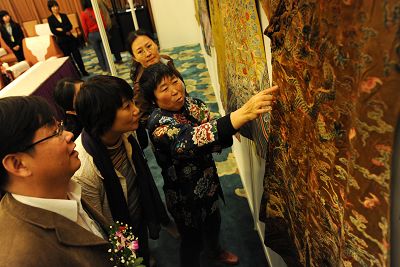 包括清代顺治帝明黄地缂织服袍、康熙明黄地织五彩云龙纹妆花缎夹朝袍在内的一批清宫龙袍下月初将于北京北纬秋拍会上拍卖。前天,这些龙袍在北京2008宫廷艺术品论坛上亮相后备受文物界关注。据故宫博物院宫廷织绣研究专家宗凤英介绍,此次集中亮相的共有18件清宫龙袍,能征集到这样高档的拍品,非常难得。