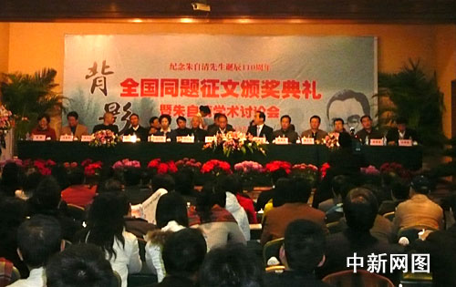 今天(11月22日)是朱自清诞辰日。为了纪念他的人与他的文,由中共扬州市委宣传部、人民文学杂志社、江苏省作家协会共同举办以“背影”为主题的全国同题征文颁奖典礼暨朱自清先生学术讨论会,以纪念这位中国现代著名诗人、散文家、教育家、学者、民主战士诞辰一百一十周年,百余位专家学者和相关人士以及朱自清次子朱闰生(《荷塘月色》里面提到的闰儿)出席。