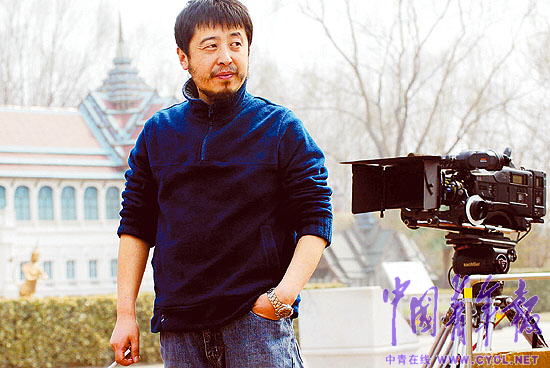 照片:贾樟柯在拍片现场 本报记者 贺延光摄