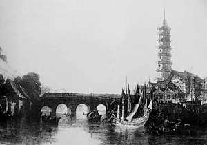 由西方画家绘制的大报恩寺及琉璃塔图。