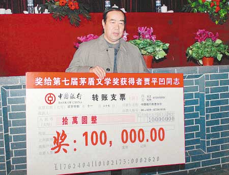 贾平凹获得10万元奖金。 记者 尚洪涛 摄
