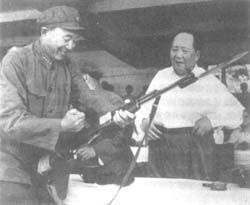 一九六四年六月,罗瑞卿陪同毛泽东检阅北京、济南军区的军事汇报表演。