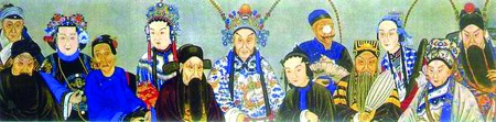 梅兰芳收藏始于戏画,藏品中最丰富、最有艺术价值的亦是戏画。这些戏画都是照扮演者的真容来描绘的,面貌神情准确逼真。其中,以存留至今的晚清沈蓉圃绘《同光十三绝》尤为珍贵。这十三绝的美称,代表着13位名伶,当年每位都有一出拿手的名剧(上图)。