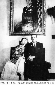 1947年12月,陈香梅与陈纳德结婚时在上海寓所合影